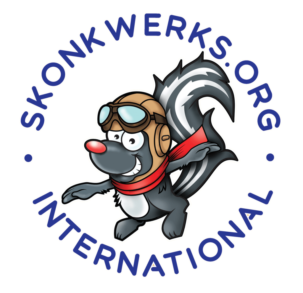 The original spelling is currently being used in Winchester Township Wi. Where a hanger was dubbed “The Skonkworks” by a neighbor in the early years. Used by a loosely knit informal organization of like minded engineers/designers/tinkerers/builders/neighbors and fliers known as the “Lone Buzzerds” an ultralight club, operating out of the “Winchester Skonkworks” or sometimes “Squirrelworks” hanger in Larsen, Wi.