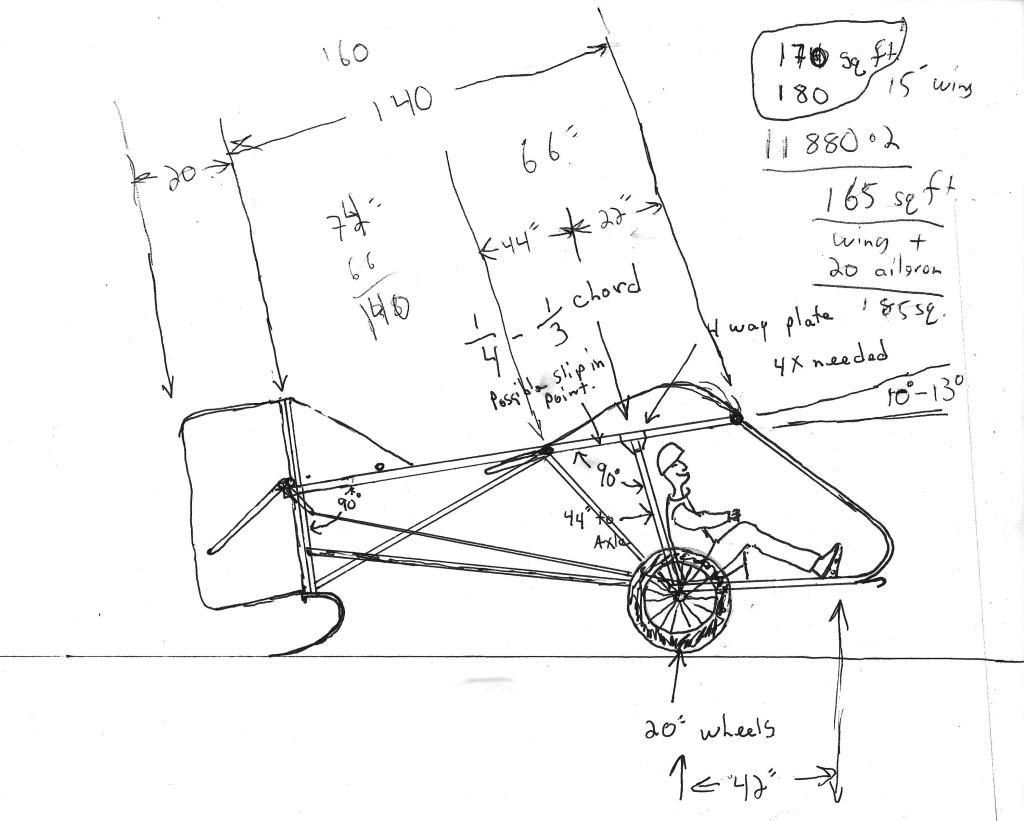 Still playing with the geometry but the tubes (you see them as round circles) on the top will be the leading and trailing edge. The axle will be infinitely adjustable fore and aft. The seat and joystick will also be ‘snap’ adjustable.